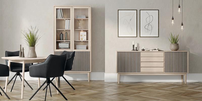 Gå gerne efter møbler og boligtilbehør i lyst eller ubehandlet træ for et perfekt nordisk look. Dette kan eksempelvis være centrale møbler i hjemmet som et spisebord, sofabord eller opbevaringsmøbel som en dekorativ skænk eller vitrine. Vil du dog gerne give din indretning et nordisk pift uden at skulle udskifte dine møbler, kan du nemt tilføje små dekorative genstande i naturmaterialer. Læg eksempelvis et lækkert tæppe i din sofa eller lænestol, tilføj en plakat med et plantemotiv i en egeramme eller spred hygge med lamper med træ og læder i designet.