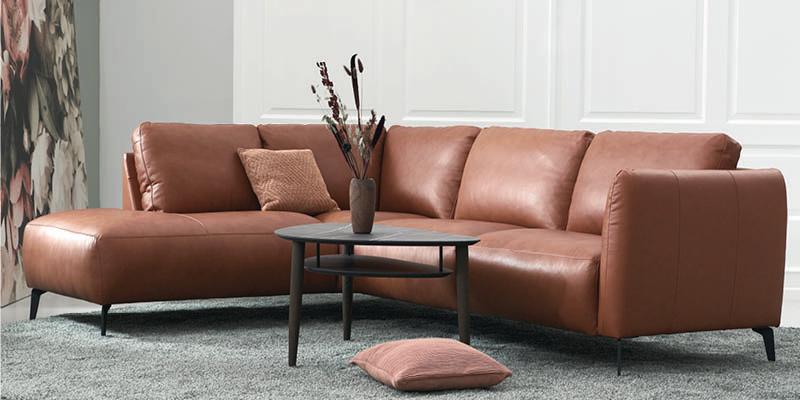 Sidst, men ikke mindst, slutter vi af med denne luksuriøse og cognac farvede sofa. Sofaen kan med sin mættede og varme jordfarve leve op til ønsket om det naturlige i hjemmet. Jordfarveskalaen består nemlig af afdæmpede og blide nuancer, som kan findes i naturen omkring os.